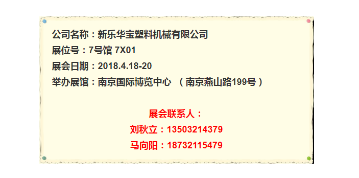 Chinaplas2019新樂華寶誠邀您蒞臨2.1J21展位